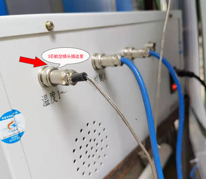 KZB-3型儲氣罐超溫保護(hù)裝置安裝中,溫度傳感器3芯航空插頭要注意與后面板的“溫度”字樣對應(yīng)。見下圖: