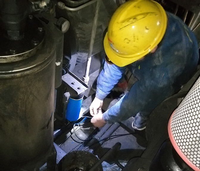 不顧滿身臟污認(rèn)真按照的技術(shù)人員