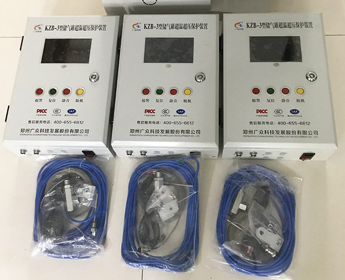 鄭州廣眾科技發(fā)展股份有限公司生產(chǎn)的KZB-3型儲(chǔ)氣罐超溫保護(hù)裝置,出廠設(shè)置儲(chǔ)氣罐的報(bào)警溫度為120℃,符合煤礦安全規(guī)程要求,臥式機(jī)型可以滿足各礦業(yè)調(diào)低報(bào)警溫度的需要,液晶壁掛式機(jī)型完全按照《煤礦安全規(guī)程》規(guī)定的120℃不可調(diào)整。