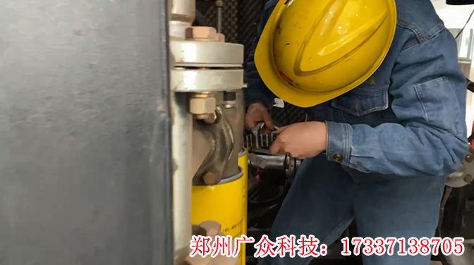 鄭州廣眾工程師在現(xiàn)場安裝空壓機(jī)斷油保護(hù)裝置