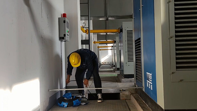 廣眾工程師在空壓機(jī)斷油保護(hù)裝置安裝現(xiàn)場(chǎng)