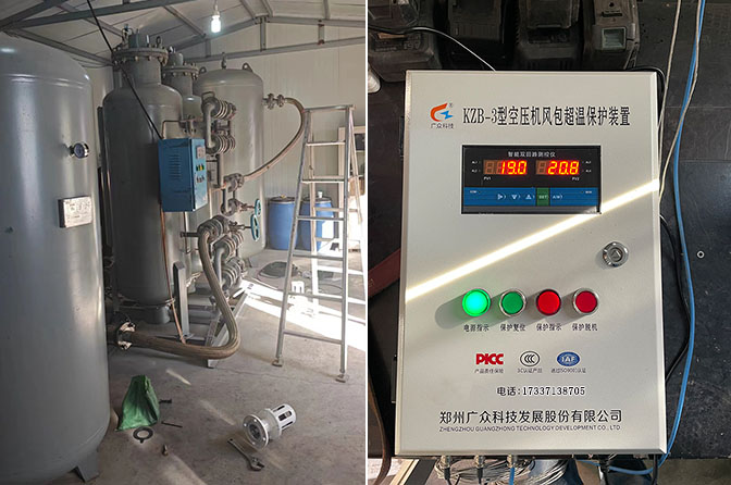 應(yīng)甘肅用戶要求,鄭州廣眾科技發(fā)展股份有限公司到現(xiàn)場進(jìn)行安裝空壓機(jī)風(fēng)包超溫保護(hù)裝置及井下隔爆型儲(chǔ)氣罐超溫保護(hù)裝置。
