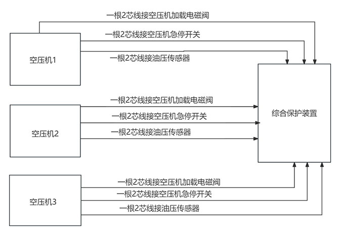 下面是空壓機(jī)斷油保護(hù)裝置接線示意圖: