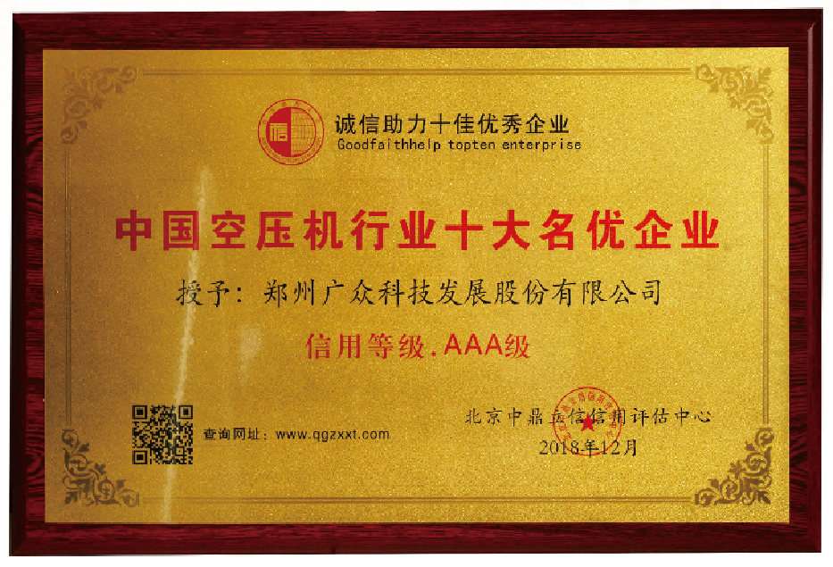 熱烈祝賀我司榮獲中國空壓機(jī)行業(yè)十大名優(yōu)企業(yè)!